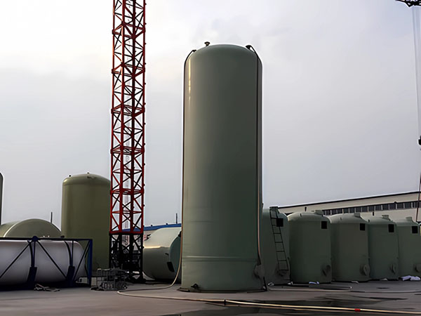 立式玻璃钢储罐一般为圆柱形,直接置于基础上,顶部为锥形或平顶。